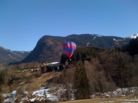 There we were minding are own business, relaxing in the chalet. Then Alex (Tsar of Wales) shouted ”Dad, look out the window. And, there it was a beautiful, hot air balloon making it’s way majestically up the Val D’Aulps just outside the chalet. We could almost reach out and touch it.