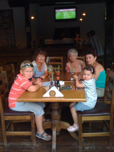 The little girl in the front is Rita’s great niece, the older lady Rita’s mother and opposite Rita is her sister; so we had many generations of Russians with us for the last 10 days of the break. Glyn had to go back to Moscow by this time (what a surprise?) although he did join them for a weekend – when this picture was taken.
