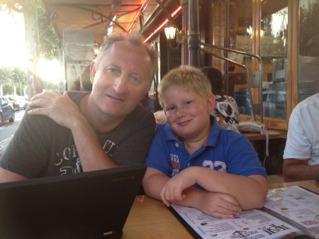 Looking mightily bronzed and relaxed at the favourite bar. The hols, alas, must be coming to an end