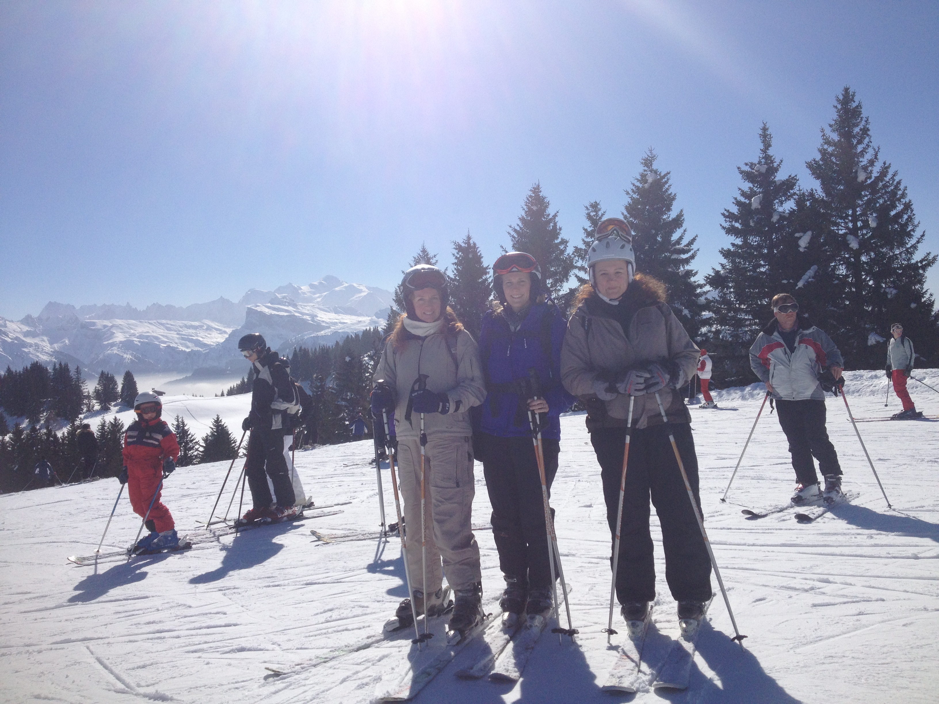 Carol, Caroline and Joanne from Jersey on the top of Rosa with Mont Blanc in the background.