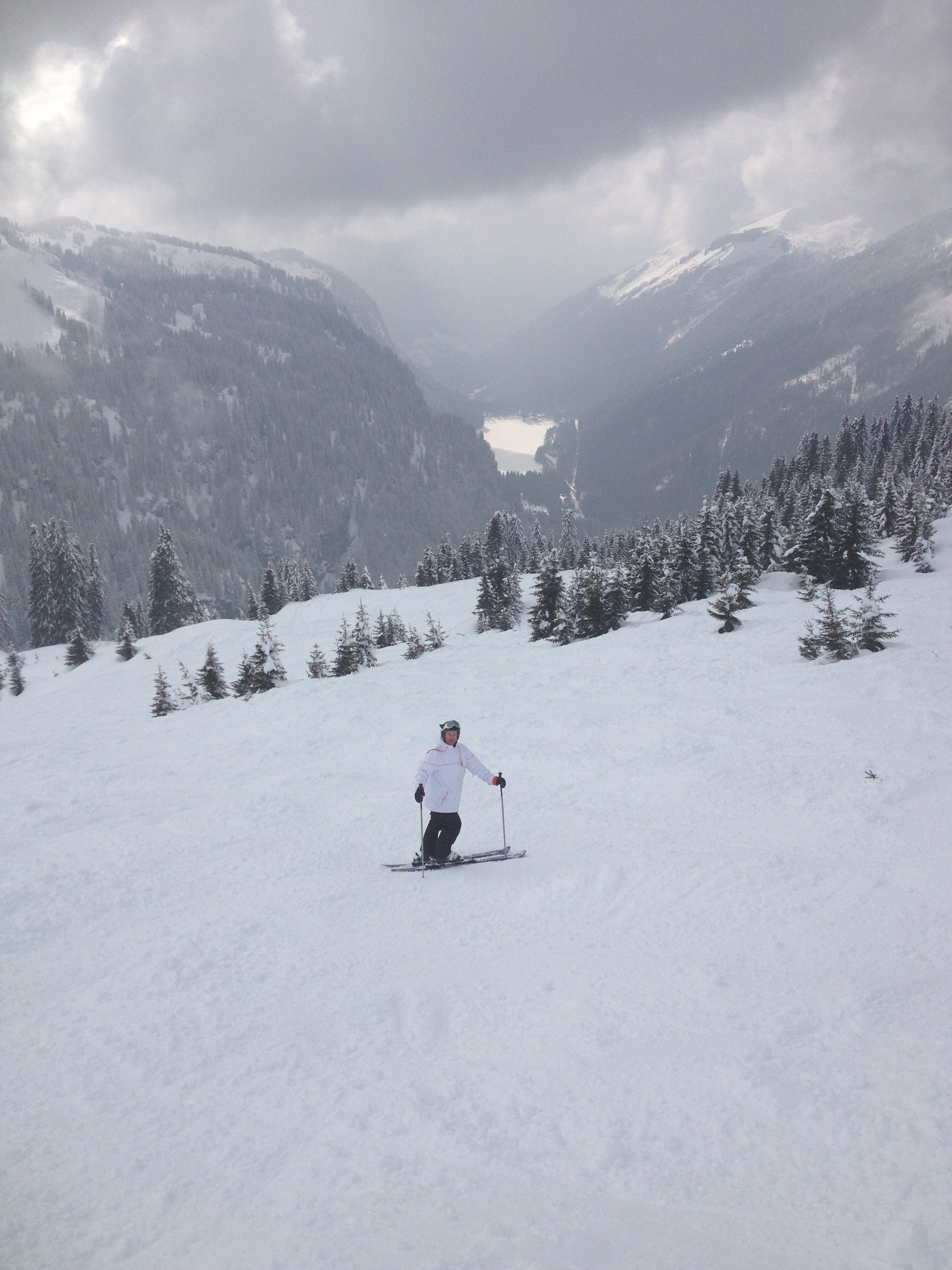 What a difference a day makes! Virtually the same spot – you can definitely see Lac Montriond in the background this time.
