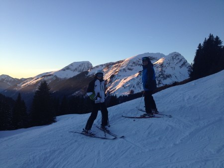 Mike and Lewis decided they wanted one last run of the day. Look at that sun setting!! They were a bit tired in the evening though.