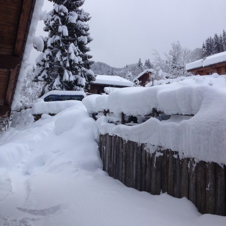 ……… and falling. More snow than we’ve ever seen in 15 years or more, living and being around Morzine.