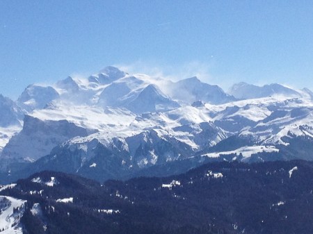 Despite lots of sunshine, early in the month we had strong winds. Look closely and you can see the snow blowing off Mont Blanc.