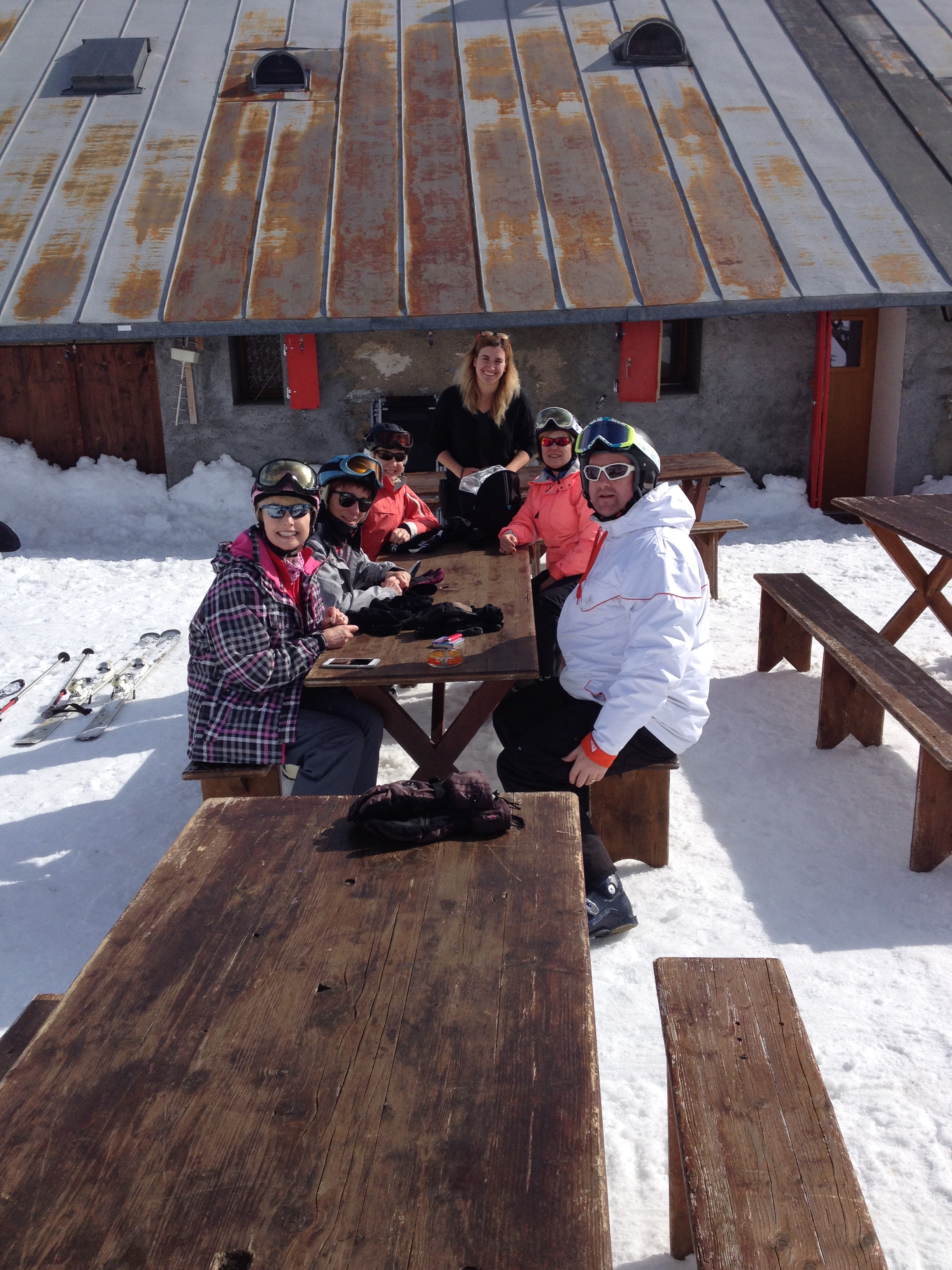 Chocolate in the sun at the traditional Buvette – half way to Morgins