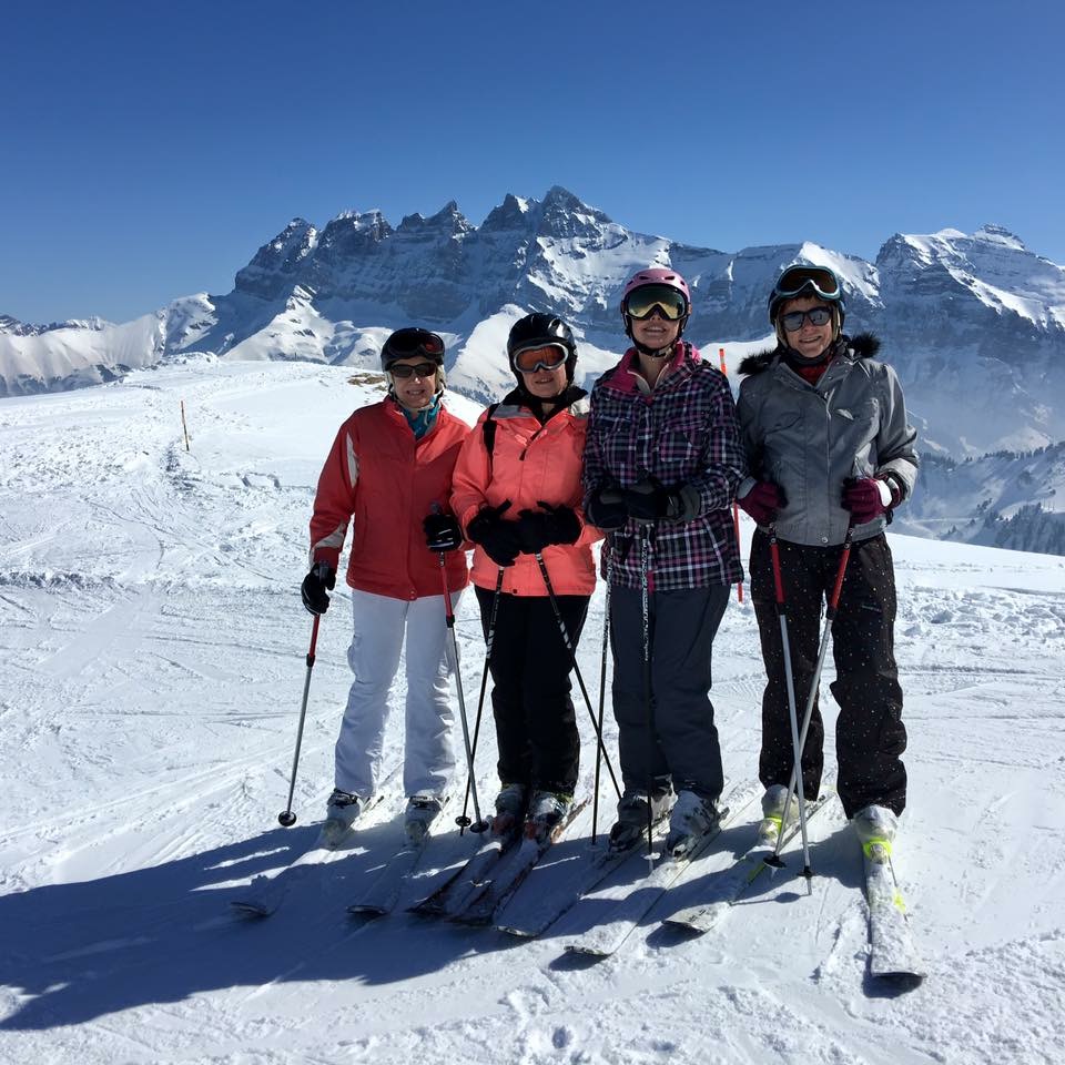 Trad foto – Cath, Alison, Felicity & Val with the ‘Dents du Midi’ behind